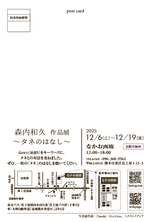 2025年12月6日(土) -12月19日(金) 12:00-18:00. 会期中無休